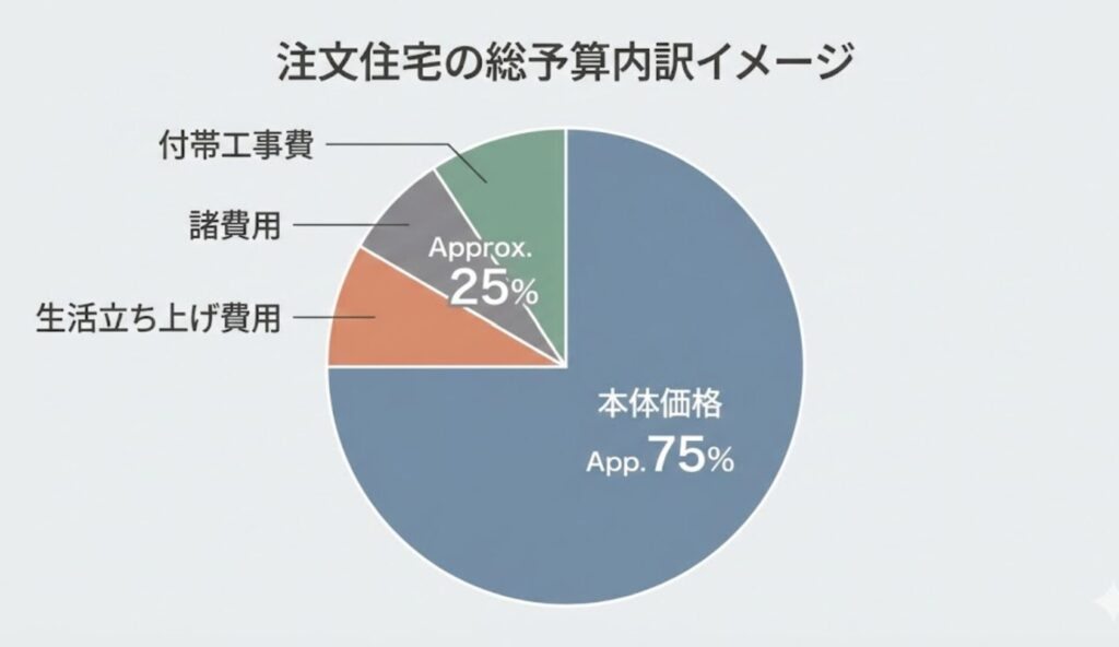 一般的に、これらの合計は総予算の**「2割から3割」**ほどになると言われています。例えば、本体価格が2,500万円の家なら、プラスで500万〜750万円ほどが必要になる計算です。