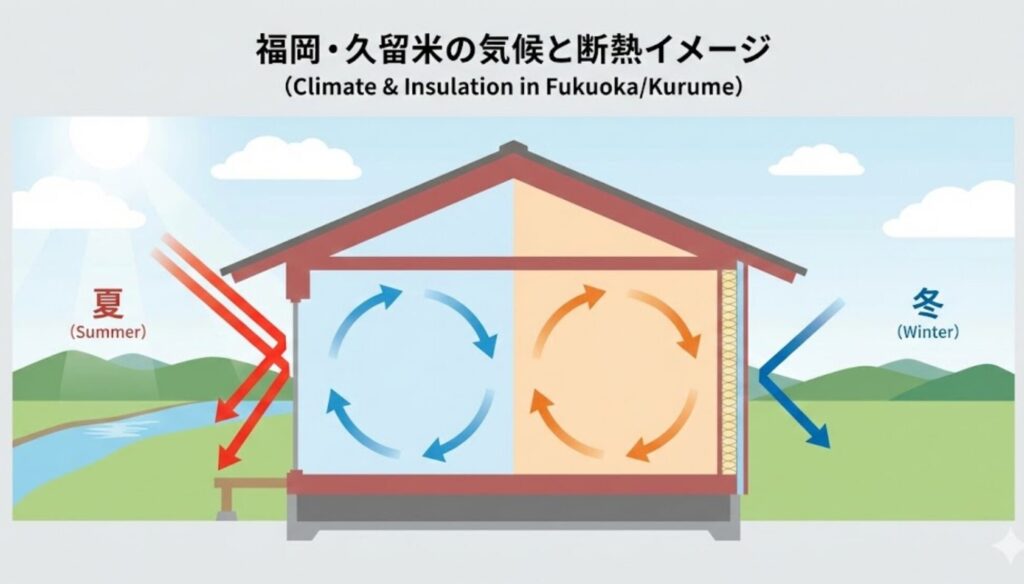 私たちが住まいづくりを行っている福岡県、特に久留米市周辺の筑後平野は、夏は全国でも有数の暑さを記録し、冬は「底冷え」とも表現される冷たい風が吹く、家にとっては非常にタフな環境です。この地域で注文住宅を建てるなら、資金計画の優先順位を「見た目の豪華さ」よりも「気候への耐性」に置くことが、結果的に家計を守る最大の防衛策になると確信しています。